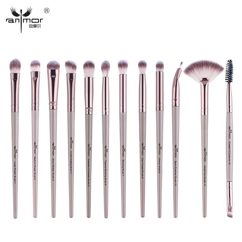 2019 Newest Anmor Pro Makeup Brushes Set 12 Pcs Lot Eye Shadow Blending Eyeliner Eyelash Eyebrow Brushes For Make Up Portable Eye Brush Set