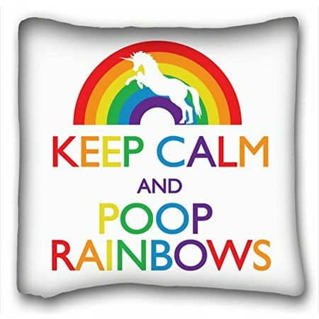 Winhome Keep Calm And Poop Rainbows Unicorn Pillow Square Throw Pillow Cover Cushion Case With Hidden Zipper Closure Pillowcase For Living Room Sofa